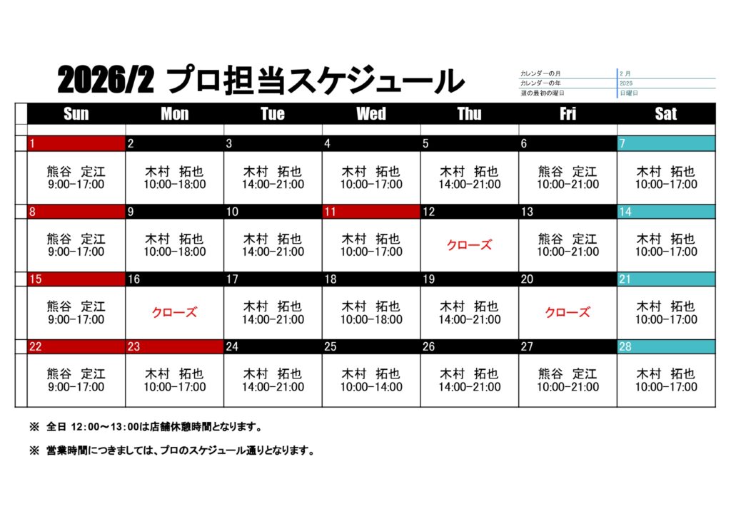 DO-1GOLF店舗レッスン 2月プロ担当日表 2026 2/10 お知らせ 2026年1月15日2026年2月10日 2月のプロ担当日表になります。 レッスンのご予約 / 店舗の休業日のご確認にご利用ください。 お知らせ よかったらシェアしてね! URLをコピーしました! URLをコピーしました!